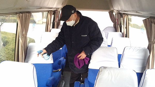 公司為在崗員工發(fā)放了口罩、噴壺、消毒酒精等防護(hù)用品,每日對(duì)各工作場(chǎng)所、班車、車庫、電梯、宿舍等進(jìn)行定點(diǎn)消毒。