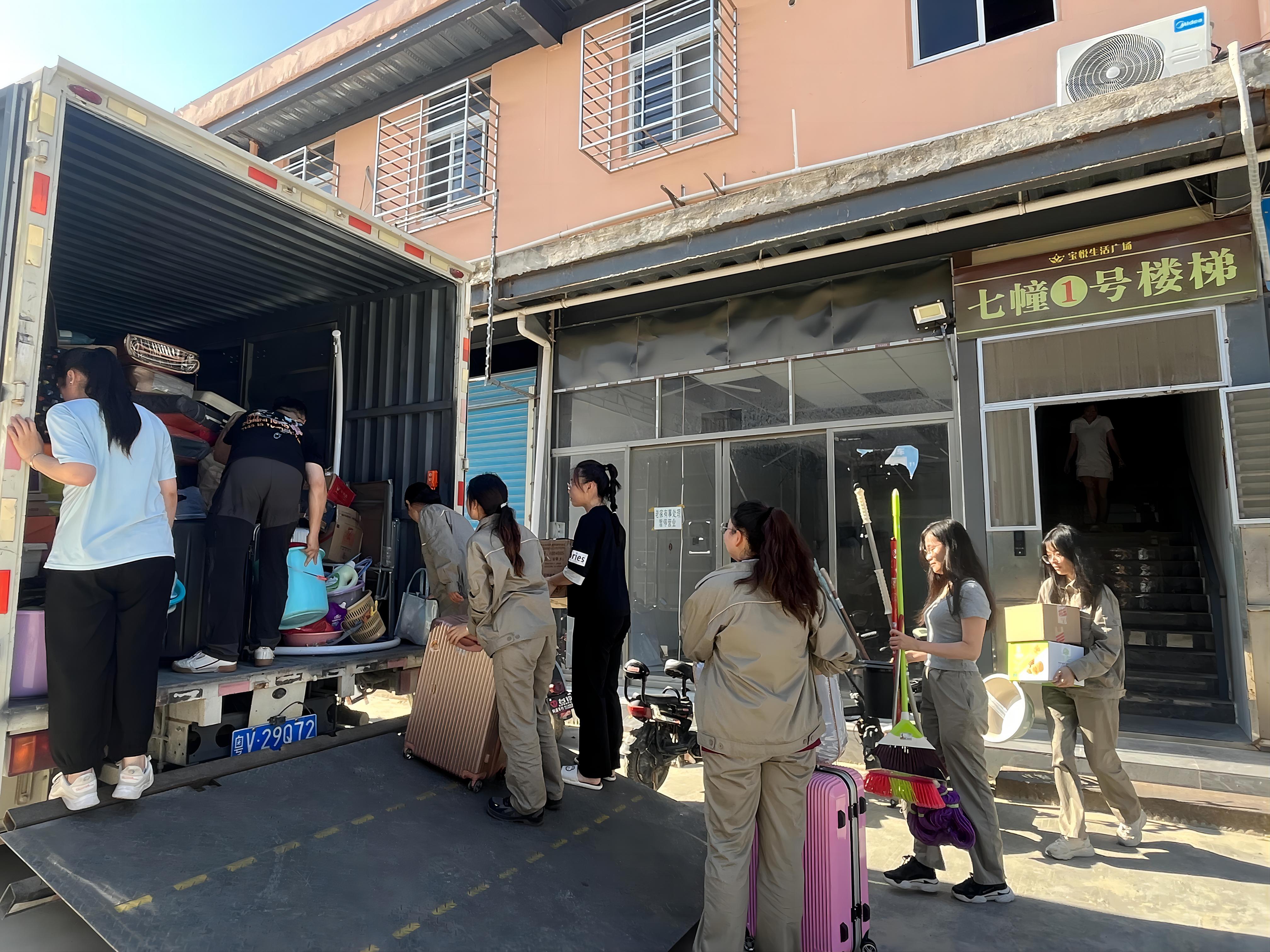 定下房源之后,員工們對(duì)新宿舍的期待值拉滿,新宿舍成了大家討論的熱點(diǎn)話題:“新宿舍幾人間???”“可以自己選室友嗎?”“聽說新宿舍旁邊有肯德基!”“宿舍有陽臺(tái)嗎?”經(jīng)過一段時(shí)間的精心準(zhǔn)備,至秋分這天,新宿舍通水通電,食堂也全部裝修完畢,具備入住條件,公司通知全體員工準(zhǔn)備搬遷。在一片歡騰聲中,大家回到舊宿舍認(rèn)真打包行李物品,忙得熱火朝天。在女生宿舍搬遷過程中,不少男同事積極幫忙,將行李物品裝車,到達(dá)新公寓后又卸貨,汗如雨下,累并快樂著。