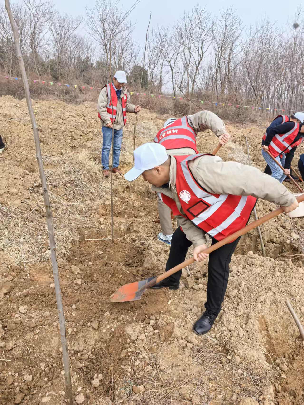 3月12日植樹節(jié)當(dāng)天,工會充分發(fā)揮引領(lǐng)作用,組織員工代表前往旺山開展義務(wù)植樹活動。植樹現(xiàn)場,大家揮鍬鏟土、扶苗填坑、提水澆灌,分工協(xié)作,干勁十足。一株株新栽的樹苗迎風(fēng)挺立,為初春的大地增添勃勃生機。