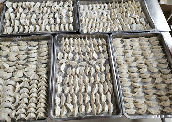 大家齊心協(xié)力,用心包出的餃子如一排排元寶華麗亮相。每一個(gè)餃子都代表對員工的一份關(guān)愛,一份祝福。