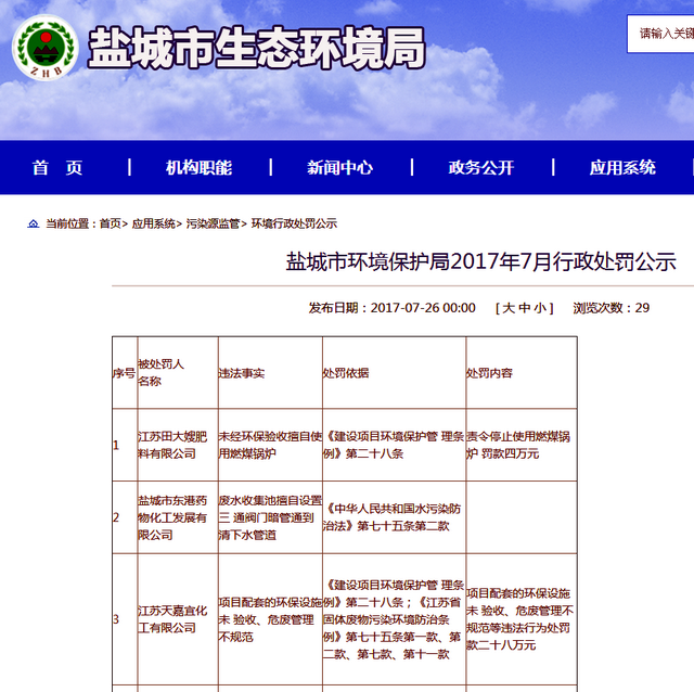 鹽城市環(huán)境保護局2017年7月行政處罰公示顯示,江蘇天嘉宜化工有限公司存在項目配套的環(huán)保設施未驗收、危廢管理不規(guī)范等違法行為,處罰款28萬元。