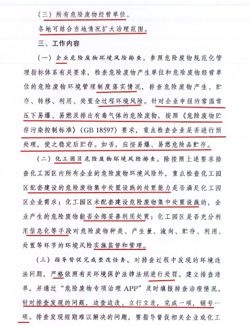 日前生態(tài)環(huán)境部印發(fā)加急文件《關(guān)于開展危險(xiǎn)廢物專項(xiàng)治理工作的通知》。